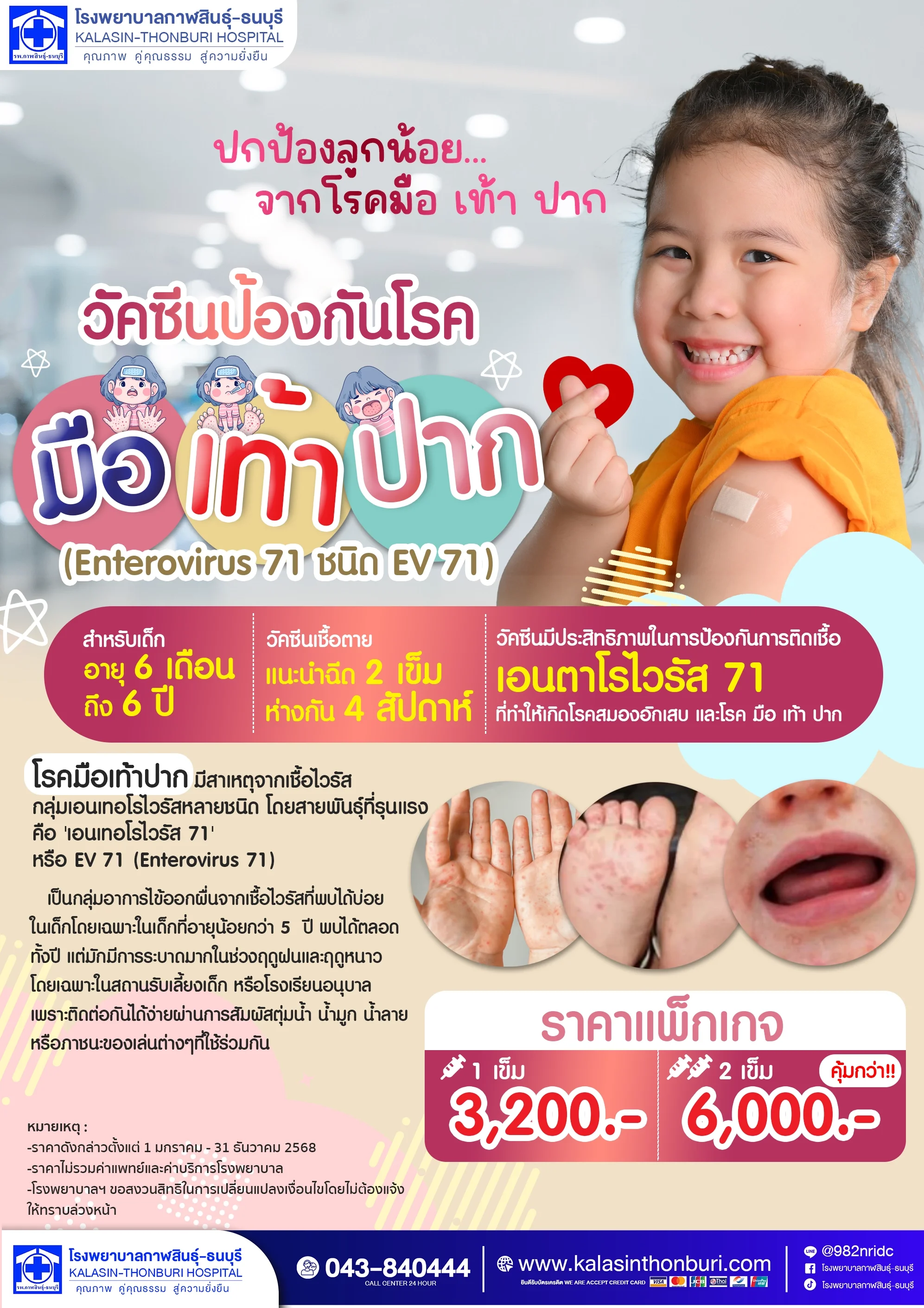วัคซีนที่ป้องกันโรคมือ เท้า ปาก จากเชื้อไวรัสเอนเทอโรไวรัส 71 (อีวี 71) มีประสิทธิภาพดี เหมาะสำหรับเด็กอายุ 6 เดือน - 5 ปี โดยฉีด 2 เข็ม ในการฉีดนั้นเว้นระยะห่างจากวัคซีนเข็มแรกเป็นเวลา 4 สัปดาห์