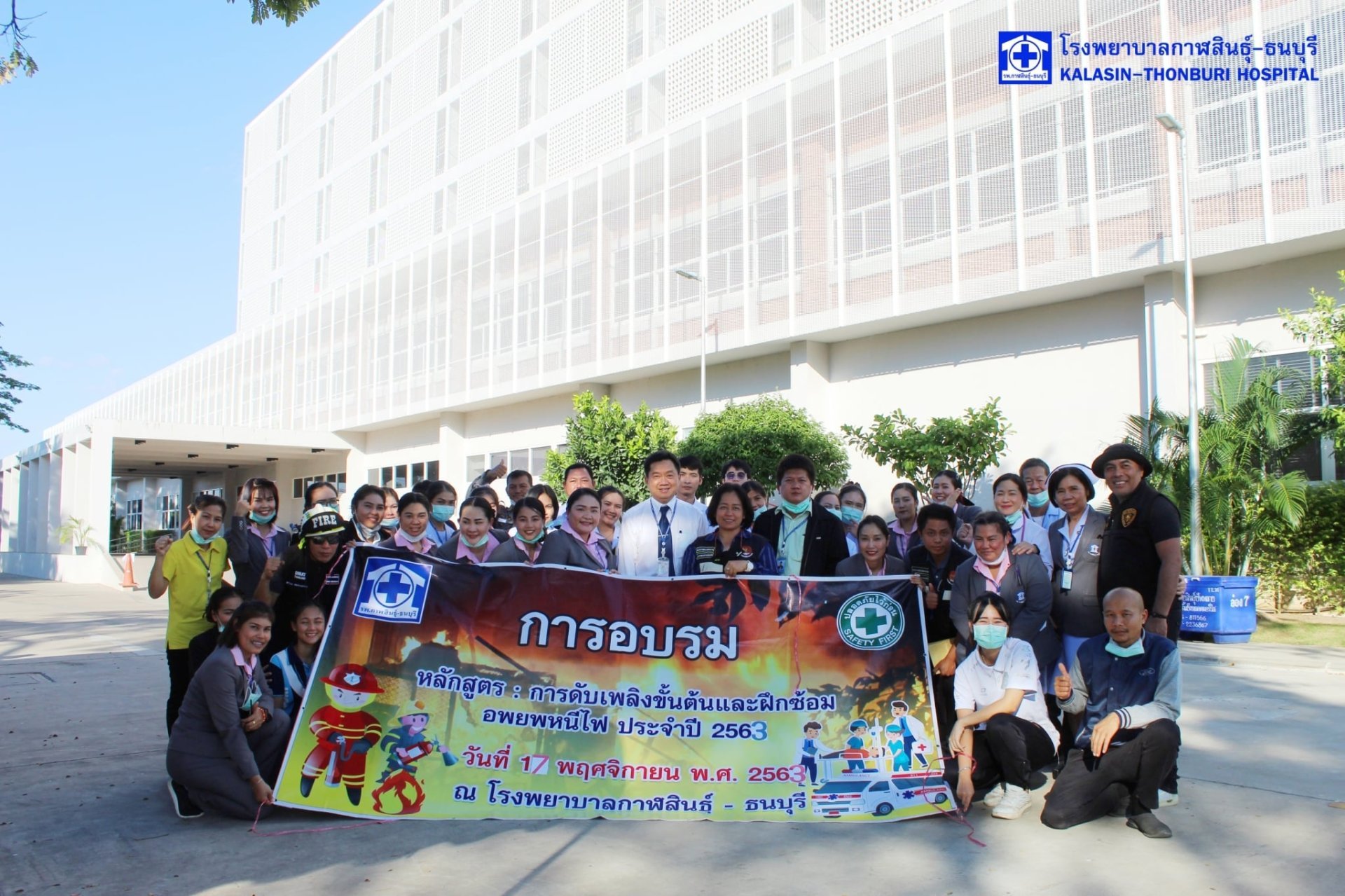 วันที่ 17 พฤศจิกายน 2563 โรงพยาบาลกาฬสินธุ์-ธนบุรี จัดฝึกอบรมหลักสูตร การดับเพลิงขั้นต้นและฝึกซ้อมอพยพหนีไฟ ประจำปี 2563