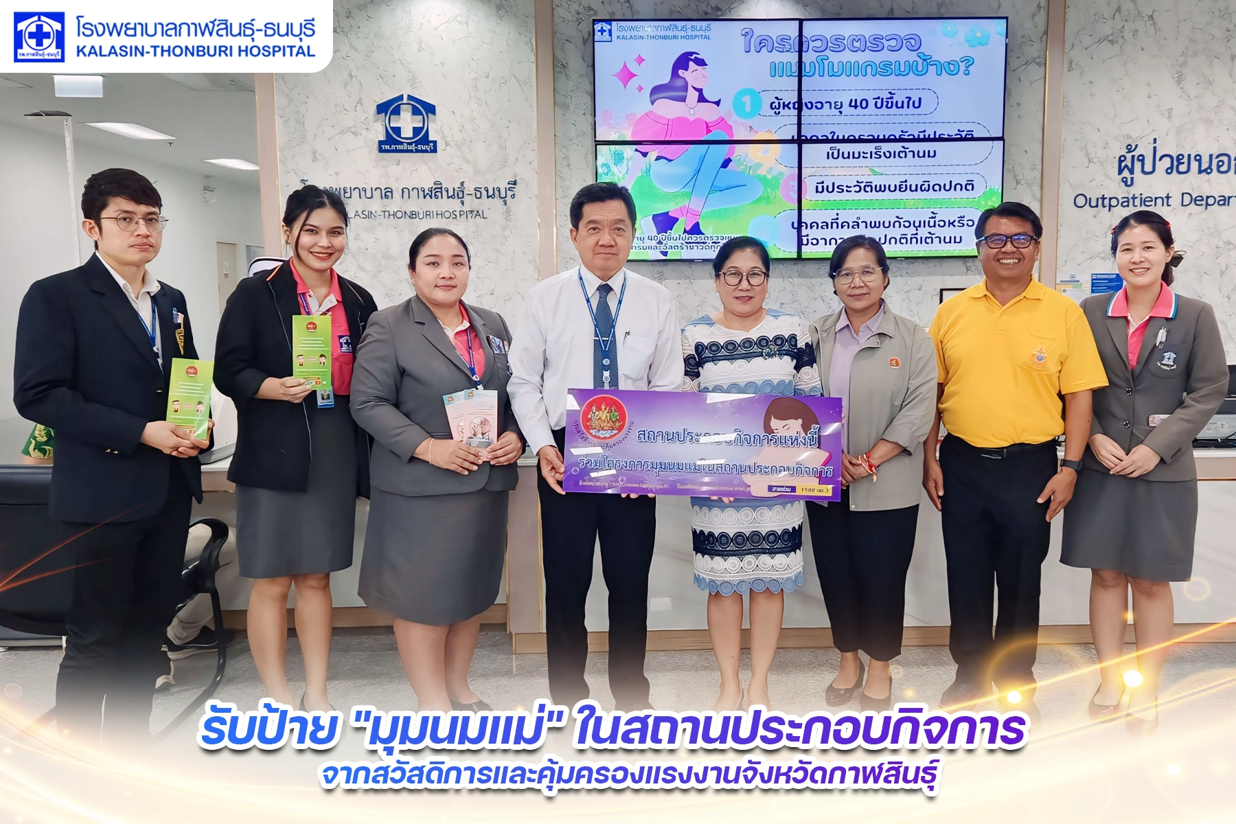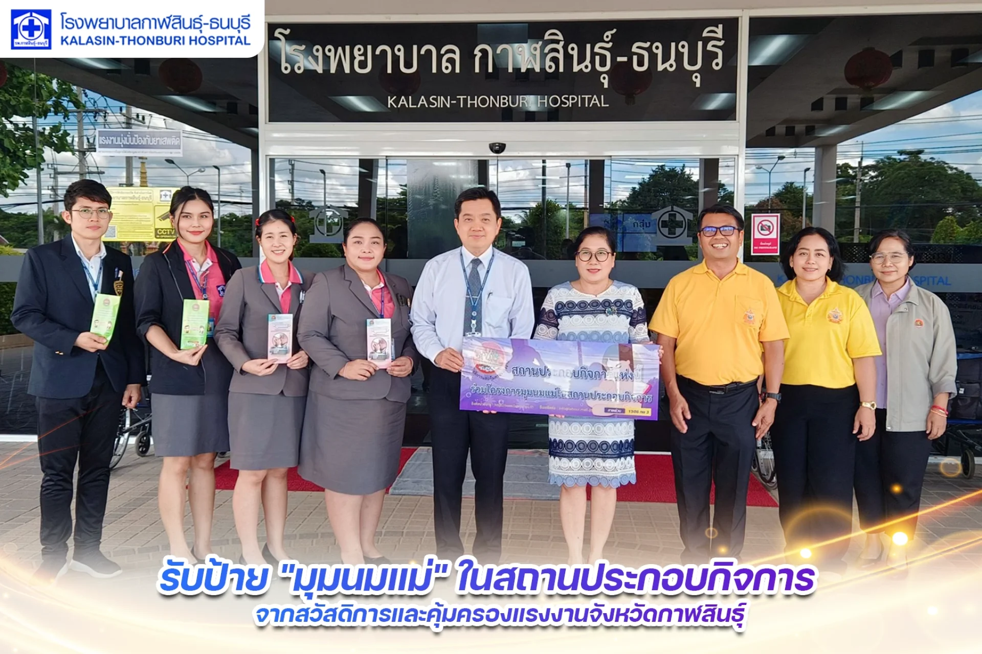 โรงพยาบาลกาฬสินธุ์-ธนบุรี รับป้าย "มุมนมแม่" ในสถานประกอบกิจการ จากสวัสดิการและคุ้มครองแรงงานจังหวัดกาฬสินธุ์
