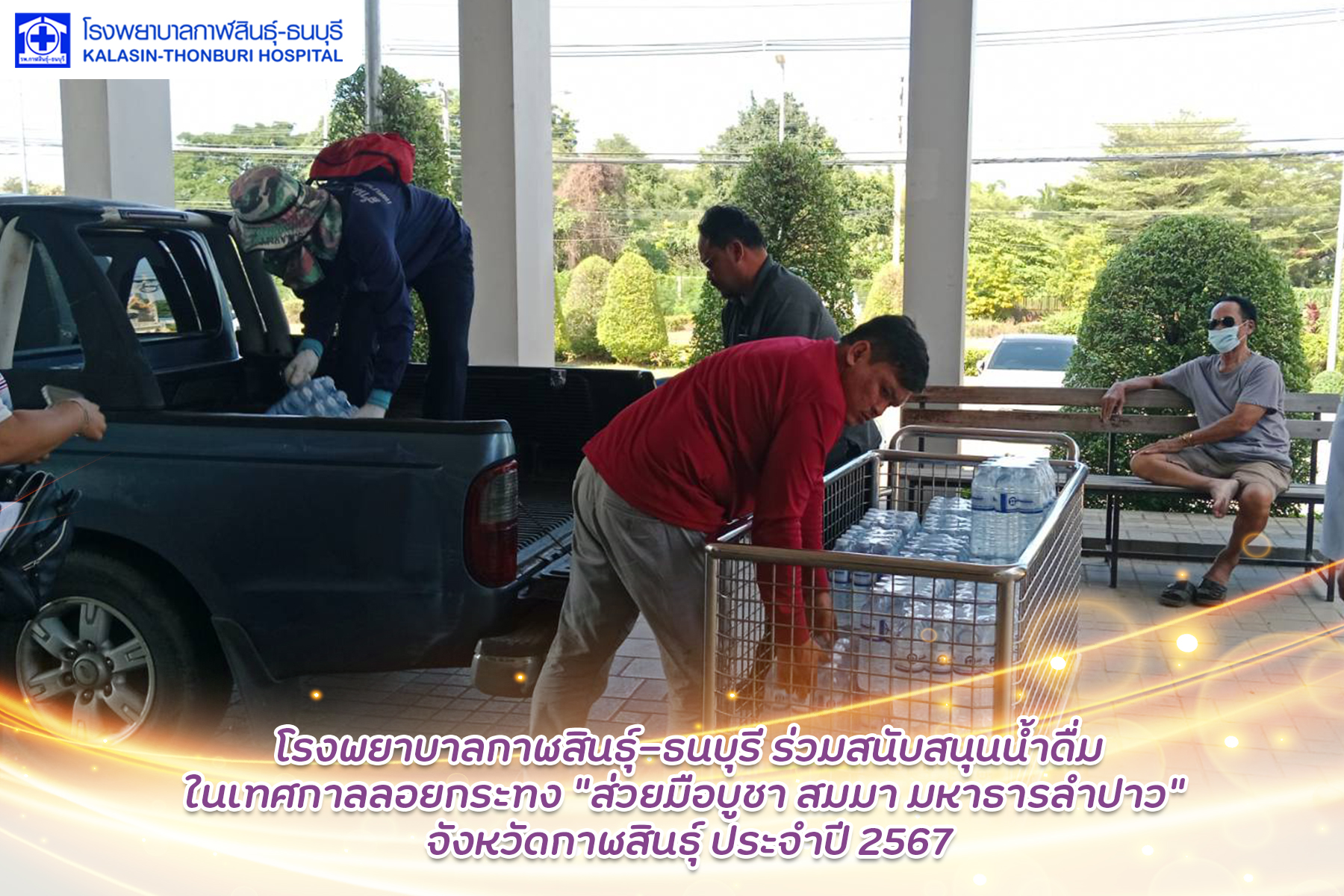 โรงพยาบาลกาฬสินธุ์-ธนบุรี ร่วมสนับสนุนน้ำดื่มในเทศกาลลอยกระทง ส่วยมือบูชา สมมา มหาธารลำปาว ปี 2567